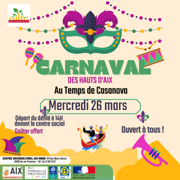 Le centre vous accueille tous les jours de la semaine de 8h30 à 12h et de 14h à 18h. Nous proposons des activités pour enfants, jeunes, familles, adultes, de l’aide pour les démarches administratives, accueil de loisir (périscolaire) pour les vacances et les mercredis de 3 à 17 ans, des sorties culturelles, un lieu d’accueil parents enfants, des activités parents-enfants et des évènements sur le quartier des Hauts d’Aix. L’adhésion annuelle au Centre Socio Culturel Aix Nord vous donne accès à toutes les activités proposées.